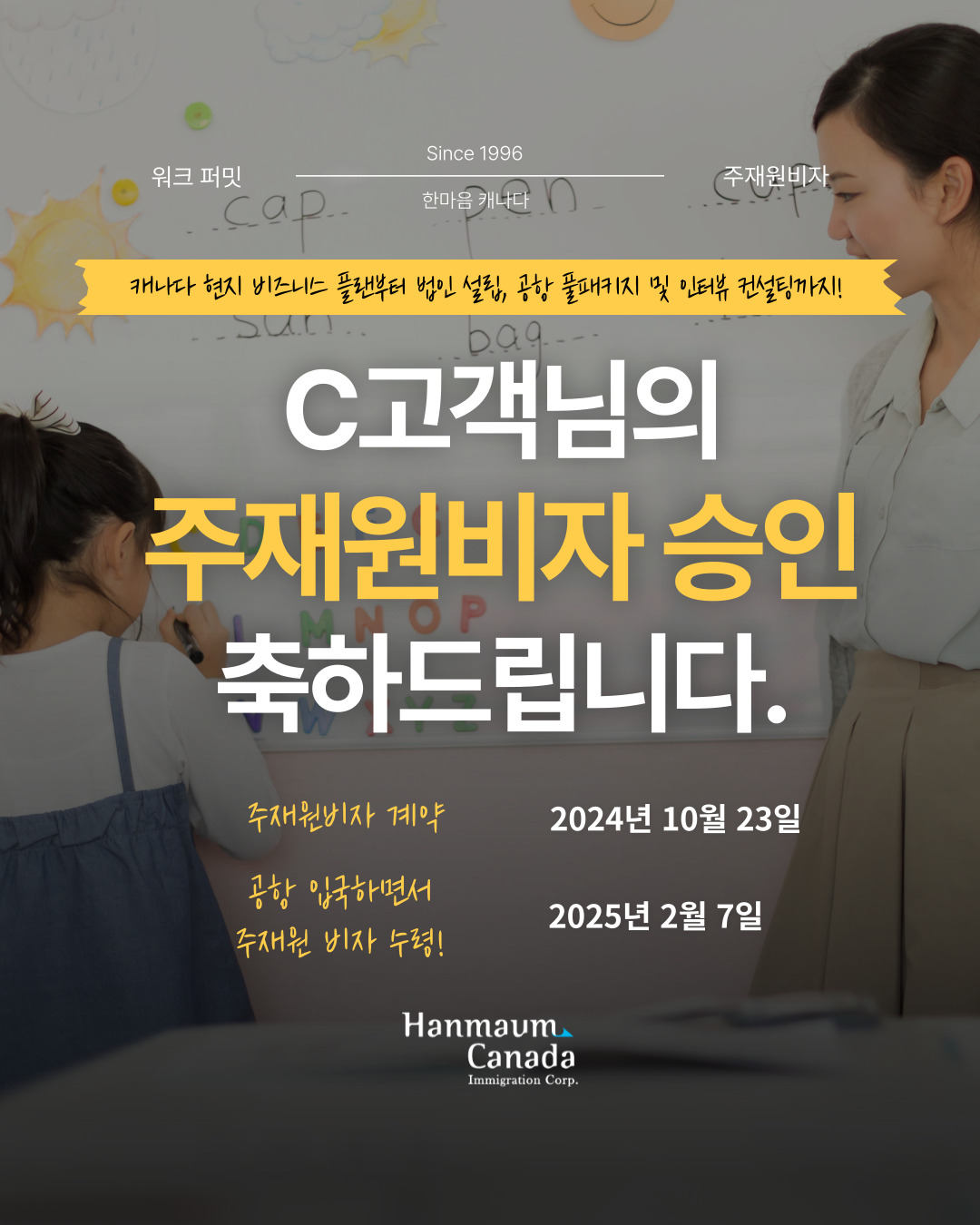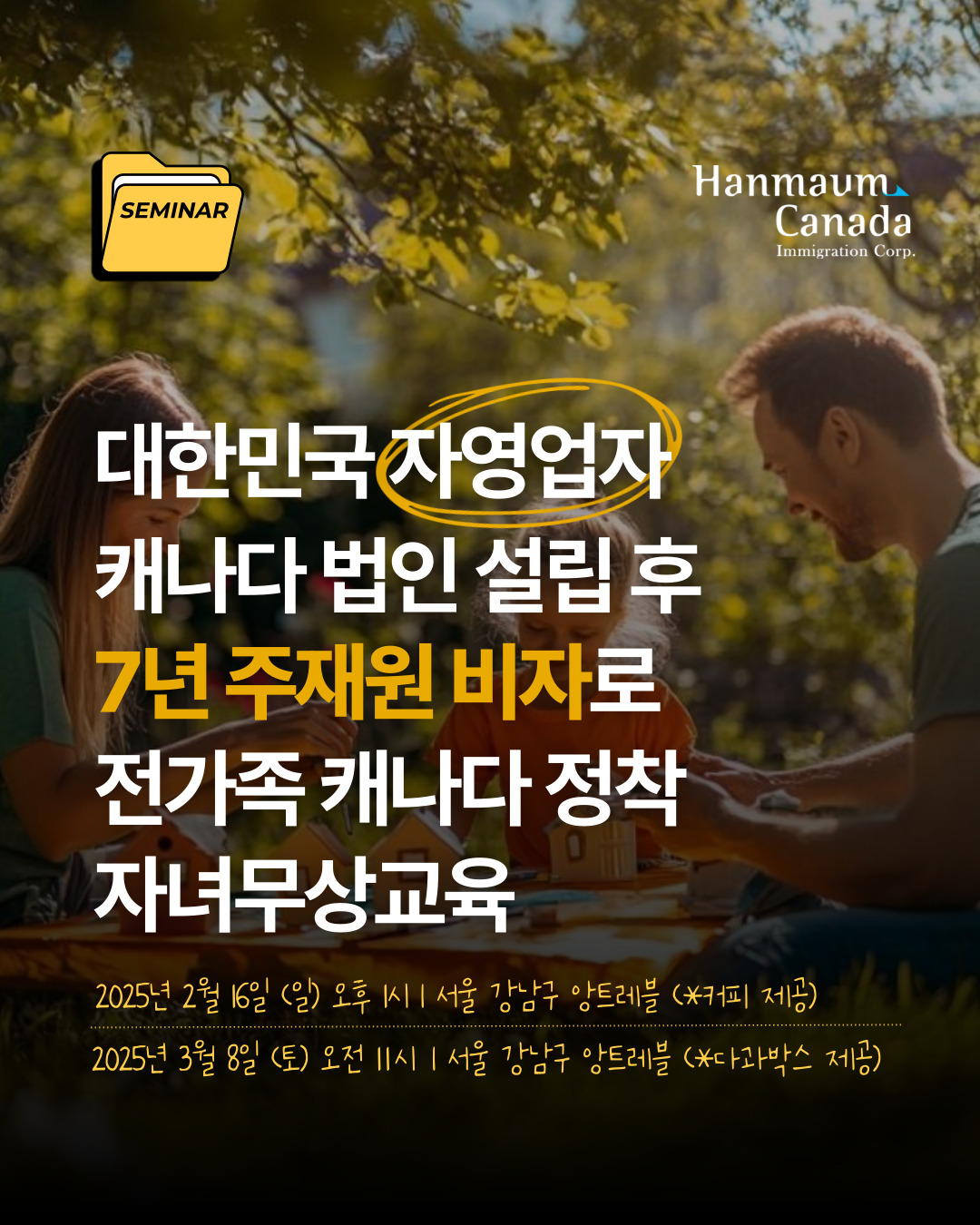 안녕하세요. Since 1996, 캐나다 현지 유학 이민 전문 법인 한마음 캐나다입니다.