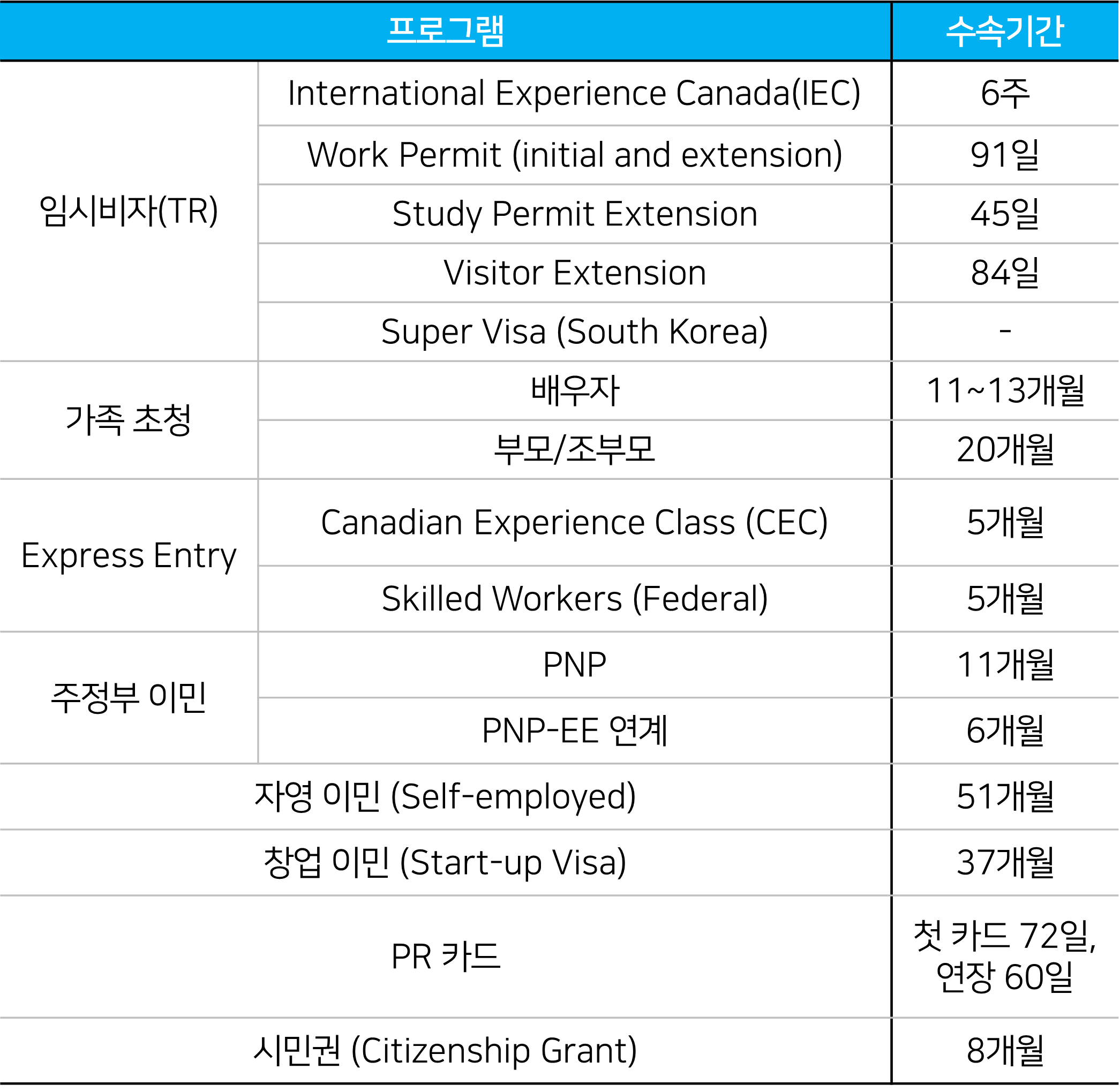 ☑️ IRCC(연방 이민부) Processing Time 안내 (2024년 5월 14일 기준) |