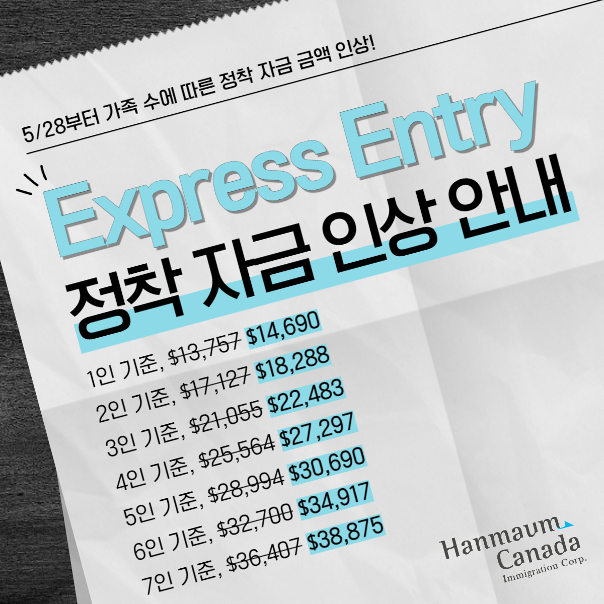 캐나다 연방이민 Express Entry는 영주권을 취득하는 과정에서 정착 자금 증명을 요구합니다. 다가오는 5월 28일부터 가족 수에 따른 정착 자금 금액이 인상되는데요. 만약 이미 풀에 등록하신 분들 중 새롭게 업데이트된 자금 증명 기준을 충족하지 못한다면, 반드시 계정 로그인하셔서 5월 27일까지 업데이트하셔야 합니다.