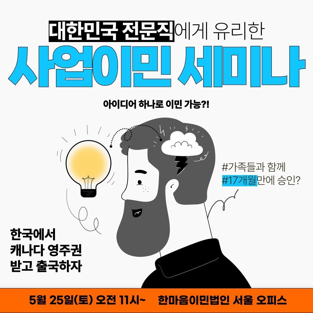 📍일시 : 5월 25일(토) 오전 11시 ~ 📍장소 : 한마음이민법인 컨퍼런스룸 (강남구 테헤란로 403 리치타워 1503호)